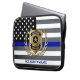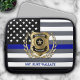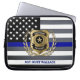 Personalize laptop sleeve featuring the classic black and white police flag with the thin blue line. Edit the name of your city and officer's name and title, for a one of a kind gift for your favorite law enforcement professional.