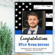 Congratulations! Add the finishing touch to your police retirement or graduation party with these thin blue line police graduation welcome poster and party supplies. USA American flag design in Police Flag colors, distressed design. This congratulations police officer graduation collection will be a favorite. Personalize with officers photo, name and date, and congratulations can be changed to happy retirement for either police retirement party, or police academy graduation party. See our thin blue line collection for matching police graduation invitations, police gifts, party favors, and supplies. COPYRIGHT © 2020 Judy Burrows, Black Dog Art - All Rights Reserved. Thin Blue Line Police Officer Graduation Party Poster