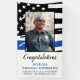 Congratulations! Add the finishing touch to your police retirement or graduation party with these thin blue line police graduation welcome banner and party supplies. USA American flag design in Police Flag colors, modern design. This congratulations police officer graduation collection will be a favorite. Personalize with officers photo, name and date, and congratulations can be changed to happy retirement for either police retirement party, or police academy graduation party. See our thin blue line collection for matching police graduation invitations, police gifts, party favors, and supplies. COPYRIGHT © 2020 Judy Burrows, Black Dog Art - All Rights Reserved. Thin Blue Line Police Officer Retirement Party Banner