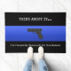 Thin Blue Line Security System doormat. Let everyone know exactly who you are the minute they arrive. Our beautiful high resolution artwork is not available in any other online store. Be proud to display this universal symbol of courage, honor and integrity. It makes a great gift for any household.