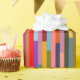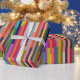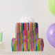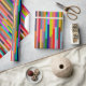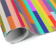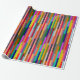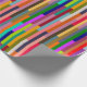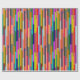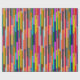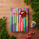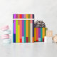 This wrapping paper has a geometric design of colorful stripes running vertically.