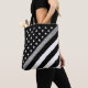 Show your support with this patriotic black and white thin gray line American flag tote bag. Personalize by replacing the sample name with your own for a one of a kind gift for friends and family who are correctional officers.. Designed by world renowned artist ©Tim Coffey.