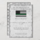 Invite your retirement party guests in style with this thin green line flag invitation perfect for those in the military, border patrol, park rangers, and conservation officers. This design features a background of silver gray with a thin green line police flag and your party details in gray typography separated by white stars. The back of the card has a pattern of white stars on silver. Designed by world renowned artist ©Tim Coffey.