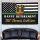 Add the finishing touch to your military retirement party with these thin green line design military banners and party supplies. USA American flag in military colors design. This thin green line party banner is perfect for a military retirement party, military deployments send off, military welcome home celebration, military graduation, and soldiers going away party. Perfect for all military, army, border protection, border patrol, conservation officer, park ranger, game warden, federal law enforcement. Personalize this american flag invitation with your soldiers name and person message. See our collection for matching military retirement gifts, military graduation gifts,party favors, and supplies. COPYRIGHT © 2021 Judy Burrows, Black Dog Art - All Rights Reserved. Thin Green Line Personalized Military Retirement Banner