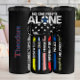 This graphic is a powerful tribute to multiple essential services, united under the motto "NO ONE FIGHTS ALONE". The design features a distressed American flag over a dark map outline, with stripes replaced by the "Thin Lines" representing: Corrections (grey), Dispatch (yellow), EMS (white/blue), Nurse (white/red), Firefighter (red), Police (blue), and Military (camo green). The name "Theodore" is placed on the side, personalizing this show of first responder solidarity.