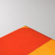 Large indigo overlaps smaller ochre against warm orange haze. Edges dissolve; lines fade. No "this side" or "that side"—only coexistence in teal shadows.