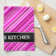Thin Pink & Magenta Lines Pattern + Custom Name Kitchen Towel