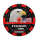 Personalised Dartboard featuring custom "name + message" with Eagle and Thin Red Line American Flag (USA) - firefighters / fire service personnel themed - love my country, fathers day, retirement, awards / patriots