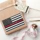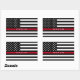 These stickers feature a thin red line American flag in honor of firefighters. Sample text has a name for you to personalize.