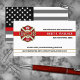 Professional, classy and custom design firefighter custom contact/business cards featuring the black and white firefighter flag on the reverse, and a crisp white background and classy maltese cross house badge and thin red line on the front. Customize each text field for your fire house and all your contact information.