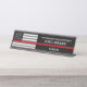 Desk name plate featuring the classic black and white firefighter flag with the thin red line. Edit the name of the department, officer's name and title, for a one of a kind gift for your favorite firefighting professional.