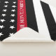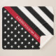 Show your support with this patiotic thin red line firefighter flag blanket. This design features a black and white American flag with stars and stripes and a thin red line at an angle and a family name for you to personalize in white typography. Designed by world renowned artist ©Tim Coffey.