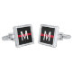 This cuff links design is in honor of firefighters featuring a horizontal red stripe on a black background and a monogram initial in white for you to personalize.