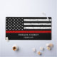 Thin Red Line Firefighter Desk Mat - American flag in Firefighter Flag colors, vintage black and red design . Personalize with firefighter name and rank. This personalized firefighter desk mat is perfect for fire departments and fire service and fireman . COPYRIGHT © 2023 Judy Burrows, Black Dog Art - All Rights Reserved. Thin Red Line Personalized Firefighter Desk Mat