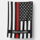 Thin Red Line house flag in American flag in Firefighter Flag colors. Personalize this firefighter house flag with your family name, station or engine #. This firefighter flag is perfect for firefighters and fireman families and all who support them. COPYRIGHT © 2021 Judy Burrows, Black Dog Art - All Rights Reserved. Thin Red Line Personalized Name Firefighter House Flag