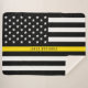 This large size blanket features a black and white dispatcher thin yellow line American flag along with a name for you to personalize. Small and medium sizes also available in our collection.