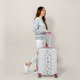 The luggage itself is awesome. So much utility for a carry-on bag. Lots of zippered pouch compartments to keep everything from getting everywhere. And it has a TSA approved lock and a dust cover! Love it. The printing is terrific. Love the way it wraps around the top and bottom. So happy the bumpers, wheels and handle color matches the design perfectly. She's gorgeous.