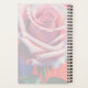 This stylish and beautiful notebook features bold colored background with one large pink rose. The frame in the center has a faded rose overlaid with pink script in the center. A personalized name in elegant script is situated in the bottom write had corner.
