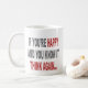 The phrase "If you're happy and you know it think again..." in gray and red text.