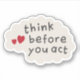 Think before you act text on brain sticker