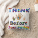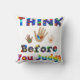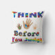 The message of “THINK Before You Judge” with hands of diversity and inclusion to respect people with autistic spectrum disorders and encourage kindness toward each other.