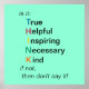 Is it: Treu, Helpful, Inspiring, Necessary, Kind - if not, then don't say it!