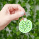 Design features the text "think green," around a circular arrangement of multi-colored green leaves in the center.