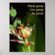 Think Green poster with a photo of a colorful frog asking you to "Think green, live green, be green". Customizable with your own text if you wish. Share your message to protect the Earth with a Think Green poster!