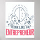 design featuring various machine and thinking elements and the quote THINK LIKE AN ENTREPRENEUR.