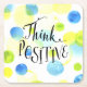 Modern calligraphy inspirational quote - think positive - at blue and green watercolor dots background | Bigstock® - All Rights Reserved.