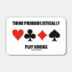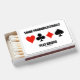 Bridge attitude is alive and well on this matchbox featuring the four card suits along with the following sound bridge / duplicate bridge advice: "Think Probabilistically Play Bridge". Make others do a double-take with a dose of bridge humor at your next bridge game with this memorable bridge saying matchbox. No need to be a bridge teacher or avid bridge player to enjoy!