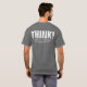 My 11 yo wore adult XL (5’7” 165#). The 8yo is small framed. She wore adult small and tied it in the back. Grandma wore adult large with long sleeve shirt underneath. Tall girl adult medium. Dark haired male adult large. Good quality dark Heather gray, Gildan brand shirt. -it was next up from basic choice and cost about $20 per shirt. Not too thick or thin. Washed and dried well, no major shrinkage. Not see-through. Can wear a bra under it fine. Screen print is just as shown and well done, front and back.