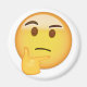 A face shown with a single finger and thumb resting on the chin, glancing upward. Used to indicate thinking, or deep thought.