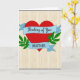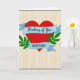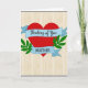 This card shows a large red heart in the center, with two light blue ribbon banners wrapped across it. The top banner says “Thinking of You” in small, cursive-style white lettering, placed right across the upper part of the heart. The lower banner reads “BROTHER” in white uppercase letters, sitting across the bottom of the heart so the message feels direct and clear. On both sides of the heart, there are simple green leafy sprigs that add a gentle, natural touch. The background looks like pale, weathered wood with vertical grain lines, giving the whole design a calm, homey setting. Thin scalloped gray edging appears along the top and bottom, framing the image without distracting from it. It feels meaningful to give because it’s a straightforward way to say you care and you’re thinking about him, whether it’s romantic love or close family affection 🥰❤️.