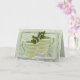 Looking for a way to get folks together? Send this greeting card as an invitation or announcement. The cover design is a digitally altered photograph of two green spiral shaped tea cups with sprigs of mint sticking out of the top. The background consists of digitally altered spiral fractals of predominantly green and a complementary purple. The cups are framed by a wavy green border. Fill in the template field for the inside text, remove text to leave room for a handwritten note or click Customize it! to select a font style, size and color you prefer. In customize, you can also add text to the card cover. Personalize it for any occasion you would like, use as an announcement or an invitation. This design is also available in the smaller note card size.