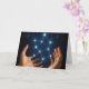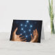 Glowing stars form a geometric shape against a starry sky, cupped gently by a pair of hands.