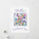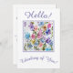 Hello Thinking of You Card to send on any occasion - Whimsical Butterfly and flower garden painted from dog paws dipped in paint - summer colors of blue, pink, green, orange and purple. A unique invitation for graduations, birthdays, anniversaries, bridal or baby showers, retirements or reunions - images from the designers original watercolor painting.