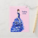 Based on watercolor fashion illustration by myself Farida Greenfield. Beautiful girl with dark hair wearing a stunning sparkly electric blue ballgown. The design has texts that can be personalized with text of your preference.