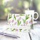 The product design features a pattern of pink tulip flowers. This botanical illustration with personalized text makes modern chic and unique greeting cards - THINKING OF YOU.