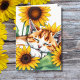 Let a friend of family member know you are thinking about them with this sweet card with a napping kitty cat by a sunflower watercolor style ai illustration.