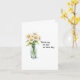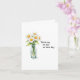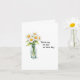 This heartfelt 'get well' greeting card features a beautiful watercolor-style illustration of a clear glass jar filled with five delicate white daisies, each with a vibrant yellow center and lush green stems and leaves. The charming design is positioned on the left side of the card, creating a sense of balance and tranquility. The simplicity of the image is complemented by the elegant, black typewriter-style font on the right, which reads "Thinking of you on this day." Against a plain white background, the card exudes a sense of peace and positivity, making it the perfect way to send well wishes to a loved one during a difficult time. 🌼🌿