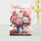 A watering can holds a botanical bouquet on bold mum blooms in shades of pink and white on this card to simply let someone know you are thinking of them.
