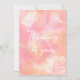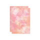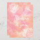 A pink and orange patchy design with text on the front saying "Thinking of you" in cursive writing. Front of hard has two faded rose outlines.