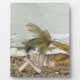 A mermaid lays on a rocky beach thinking of someone special.
