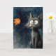 Thinking of You Scruffy Cat With Autumn Leaf Card