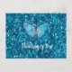 Thinking of You, shiny blue glitzy background with beautiful blue bling butterfly.