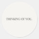 A simple round sticker featuring Thinking of you. Designed in a calm, neutral style, this sticker offers a quiet way to show care and support. Ideal for cards, envelopes, journals, or small thoughtful gestures. Part of the Everyday Support Series, created to mix and match with other gentle support messages.