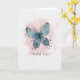 Thinking of you card with watercolor butterfly in a sketchy doodle style; faux background appears to be watercolor paper.