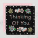 Pink and blue whimsical hand drawn flowers and thinking of you card for a friend or family member.