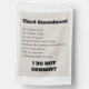 We have to the right not to quarter soldiers in our homes. Does that include our businesses and our cities? We're finding out now. Remind the invading forces that we do not consent to their presence in our cities, in our businesses, in our homes. The Founding Fathers, despite all their flaws, knew from personal experience that tyrants will force people to house and feed soldiers who do nothing but repress them. As Trump and Vance push soldiers and paramilitary into our cities and towns, attacking us all, businesses are fighting back by refusing Trump's thug squad access to restaurants and bathrooms. The Founders knew that eventually a tyrant would rise to power, and that tyrants are going to do tyrannical things. The text on the blanket is the actual text of the Third Amendment. Do you think Trump or Vance could recite it? I doubt it. Text: Third Amendment. No Soldier shall, in time of peace be quartered in any house, without the consent of the Owner, nor in time of war, but in a manner to be prescribed by law. I do not consent. Design description: A white background with a light colored rectangle. The rectangle has a light design created from using a tiny bit of the digital version of the background of the Bill of Rights. Overlaid is the text of the Third Amendment of the United States Constitution, and at the bottom in bold all caps black font, I do not consent. Customizable background color and font.